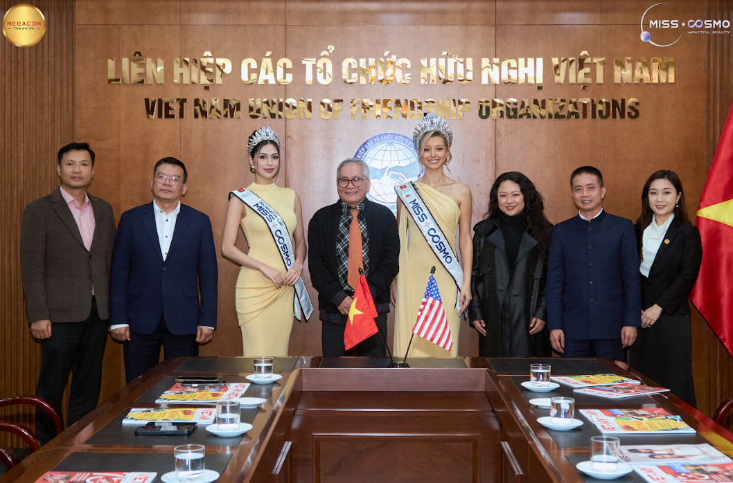 Bên cạnh đó, Top 2 Miss Cosmo 2025 có dịp gặp gỡ với lãnh đạo Liên minh các tổ chức Hữu nghị Việt Nam – cơ sở tiêu biểu tại Trung tâm Ngoại giao Quốc tế Việt Nam, góp phần thúc đẩy kết nối toàn cầu. Song song với các hoạt động làm việc, Top 2 Hoa Hậu Hoàn Vũ Quốc Tế 2025 đã đến viếng Lăng Chủ tịch Hồ Chí Minh, bày tỏ sự trân trọng đối với các giá trị lịch sử – văn hóa và tinh thần hòa bình, hữu nghị mà Việt Nam luôn gìn giữ và lan tỏa.