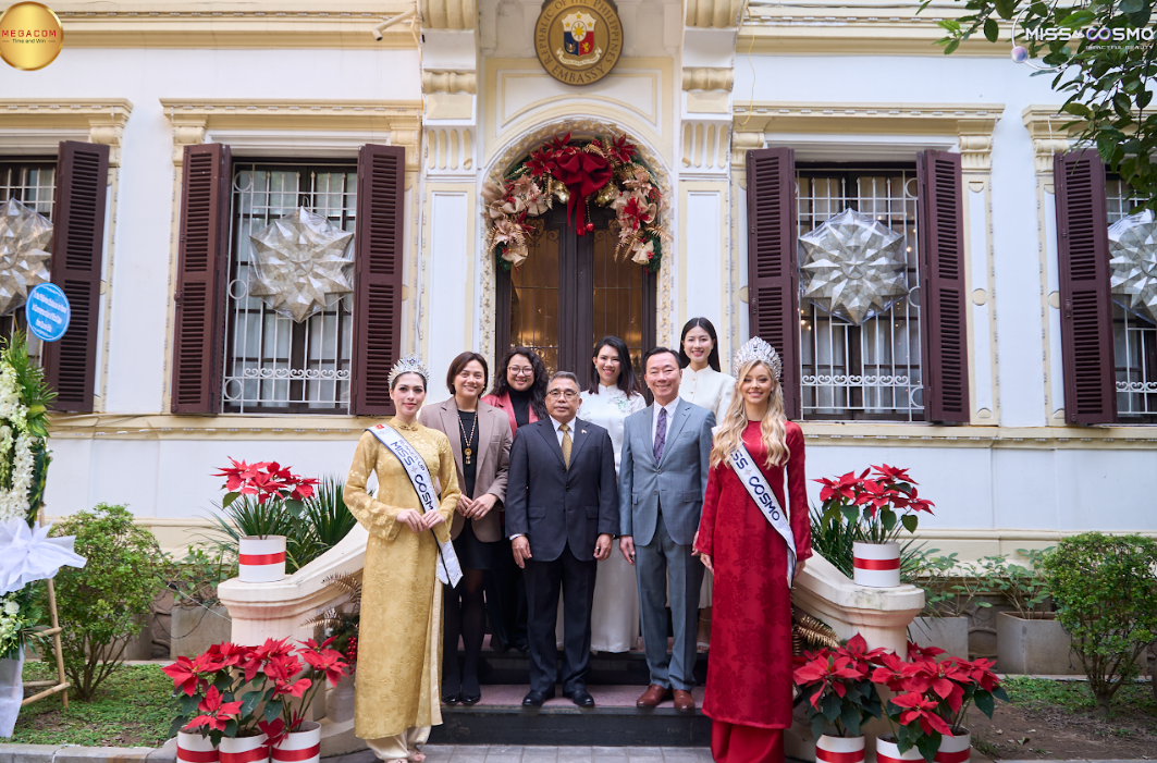 Top 2 Miss Cosmo 2025, cùng đại diện Tổ chức Miss Cosmo và ông Phạm Sanh Châu – Tổng Giám đốc Vận hành Khu vực châu Á, Tập đoàn Vingroup; Phó Chủ tịch Trung tâm châu Á – châu Âu (Vương quốc Bỉ), đã có buổi đến thăm và giao lưu tại Đại sứ quán Philippines với sự đón tiếp của ông Meynardo Los Baños Montealegre – Đại sứ Đặc mệnh Toàn quyền Philippines tại Việt Nam, bà Rosa Maria Ysobel M. Pareja – Bí thư thứ ba, Phó Lãnh sự Đại sứ quán Philippines tại Việt Nam, thể hiện vai trò đại diện trong việc tăng cường kết nối văn hóa và thúc đẩy quan hệ hữu nghị giữa các quốc gia.